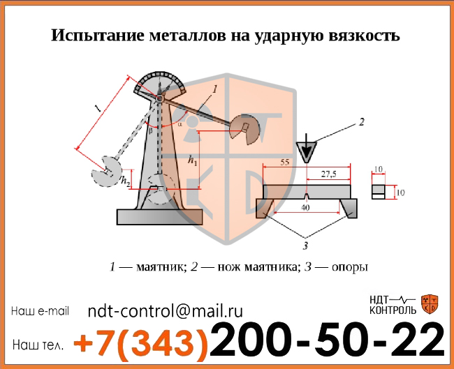 Еще один достаточно распространенный метод разрушающего контроля – динамические механические испытания металла. В отличие от статических испытаний, где нагрузка на образец возрастает плавно и медленно или остается постоянной, динамические испытания характеризуются ударной нагрузкой с большей скоростью. Наша аттестованная лаборатория ООО «НДТ-контроль» оказывает услуги по динамическим механическим испытаниям изделий, материалов и оборудования в короткие сроки. По результатам испытаний выдаем заключение.